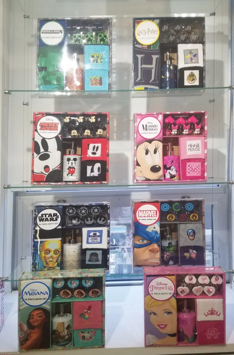 I designed the packaging for various licensed bathroom sets, including brands such as Disney, Marvel, and Harry Potter. Utilizing Adobe Illustrator and Photoshop, I created boxes to fit all products cohesively. These packaging concepts were showcased at New York Market Week.
